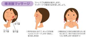 唾液の分泌を促すには、唾液腺をマッサージする方法があります。